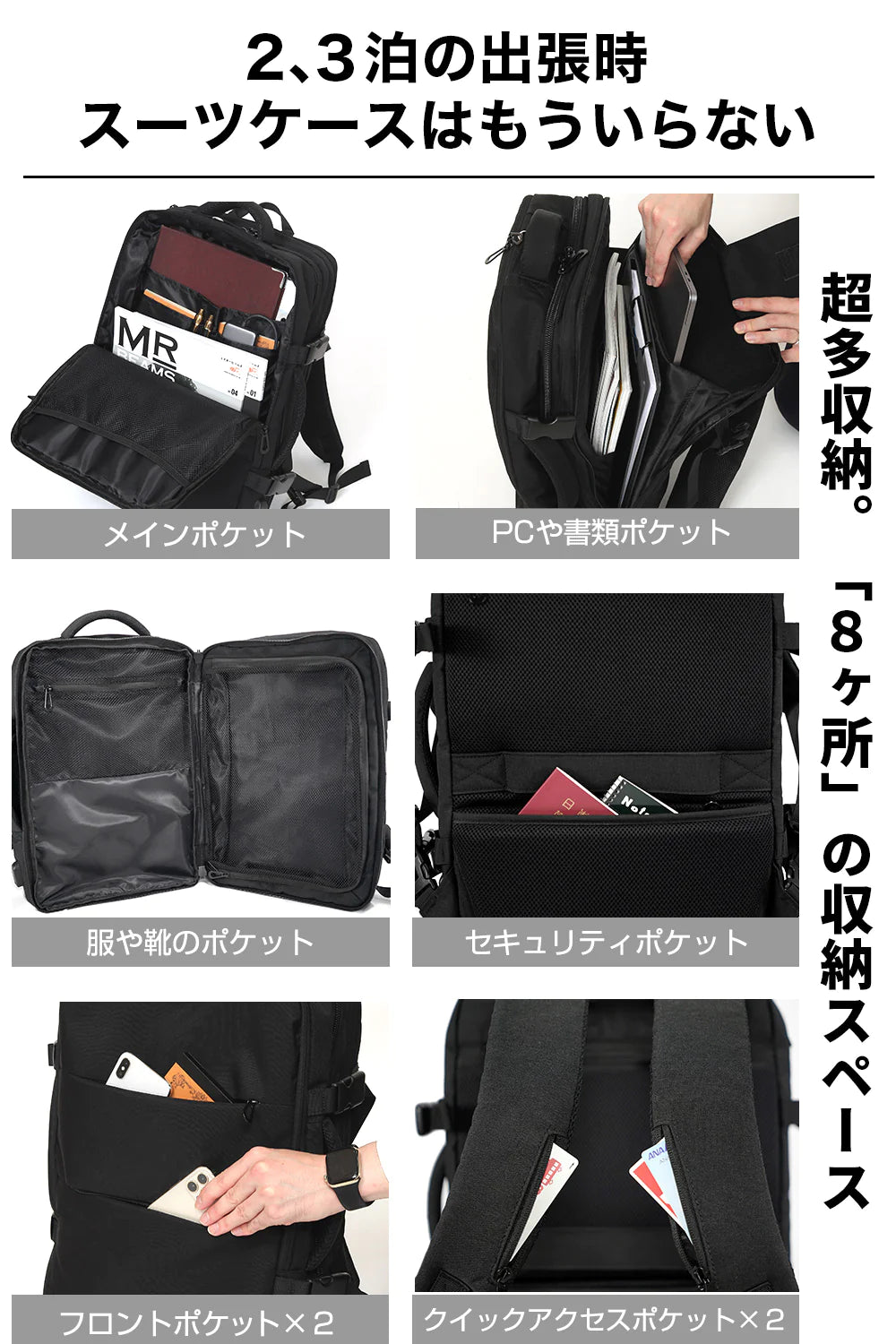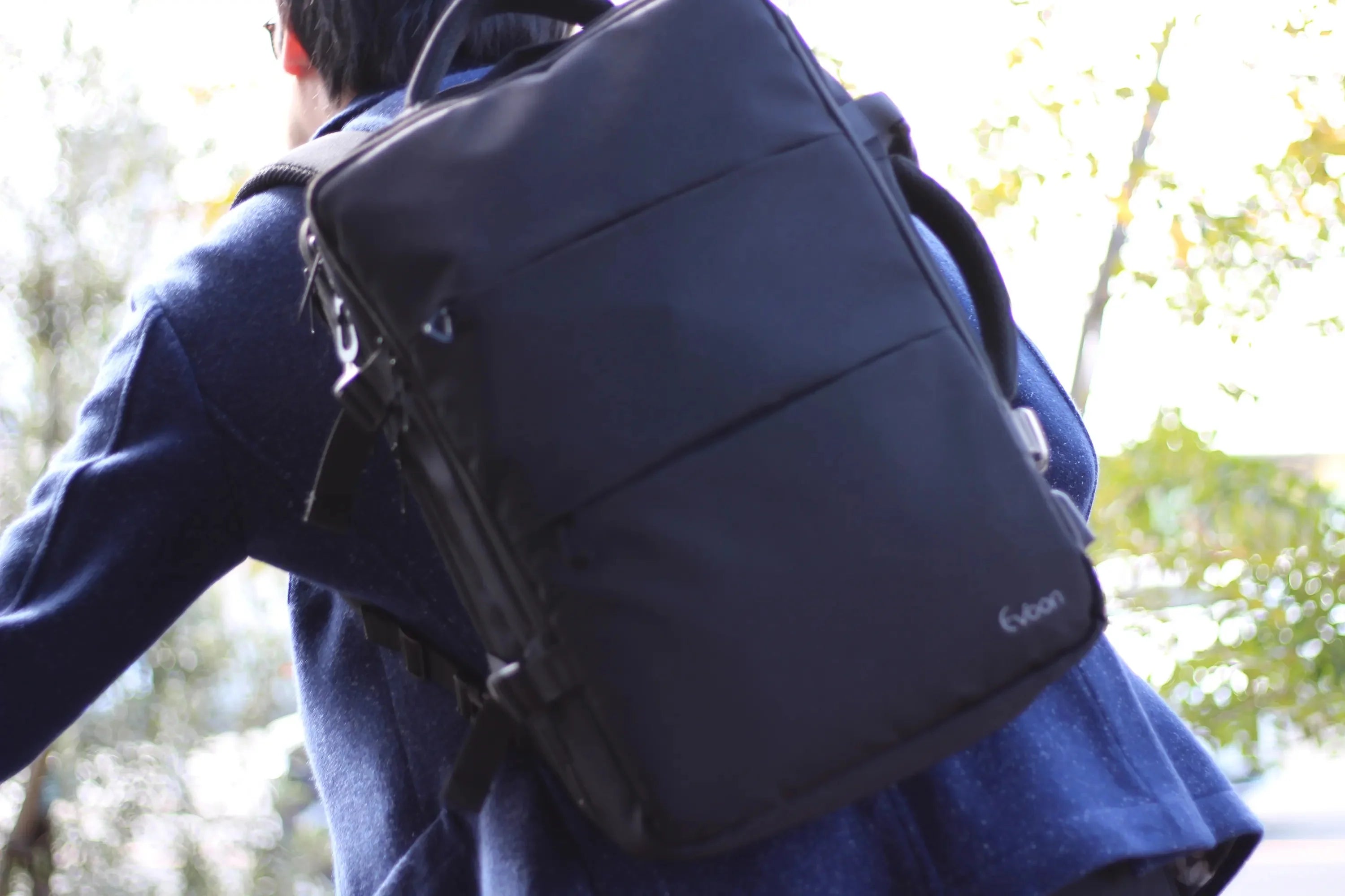 Evoonのリュックを使えば、スーツケースなしでも2、3泊の出張に行くことが可能です! -