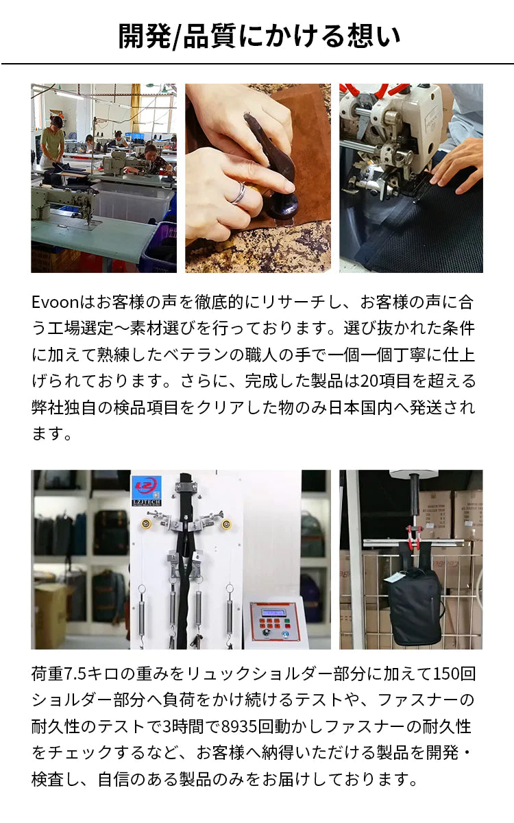 ファスナーも一個一個丁寧に動作チェックを行っておりますので、安心してご利用いただけます。 -