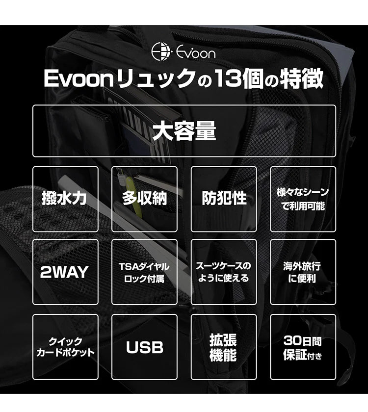 Evoon マルチビジネスリュック・容量20L~拡張時35L【送料無料・3営業日以内に発送】