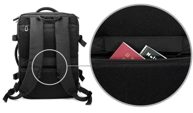 背中に面した場所にポケットがあるので、パスポート・財布の盗難防止に役立ちます。