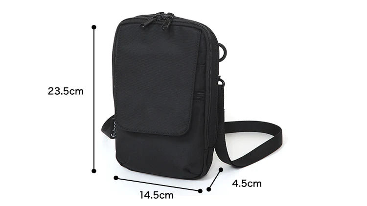 スマホポーチ・ショルダーバッグ・トラベルポーチ・ガジェットポーチとしてご利用いただけます。剃刀や洗顔などのバス用具の持ち運びや出張先・旅行先でスーツケースやリュックに忍び込ませて、フラっと外に出かける際のモードチェンジにちょうど良い収納力とスタイルを選ばないシンプルなデザイン性を追求。遠出だけではなく会食・ちょっとした買い物・ドライブ・アウトドアなど・・様々な場面でちょうどよく利用出来るマルチなミニマムバッグをこれまでの販売経験があるからこそ、たどり着き、一度使ったら離せなくなくなる究極の相棒となることを確信しています。Evoon製品により、お客様の「ビジネス・生活が豊かになる」ことを心より願っております。