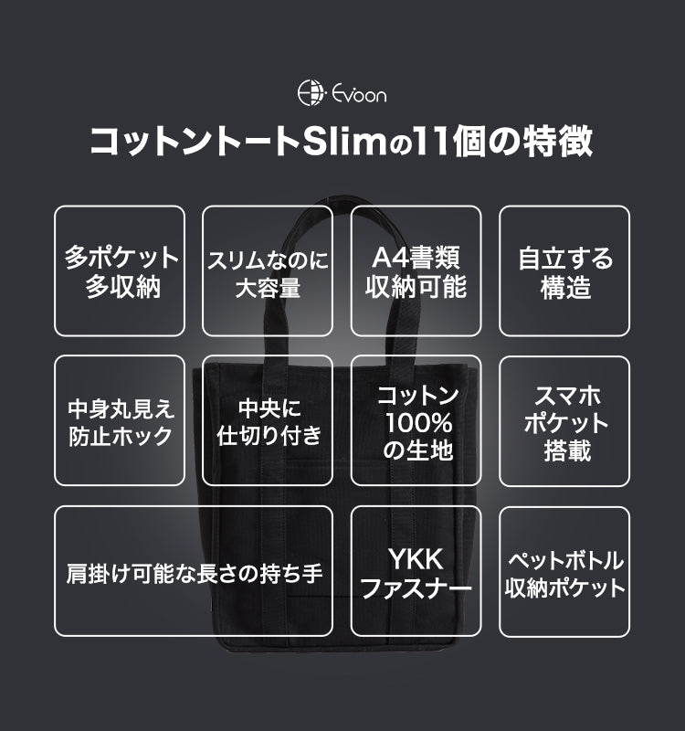 Evoon コットントートSlim【送料無料・3営業日以内に発送】