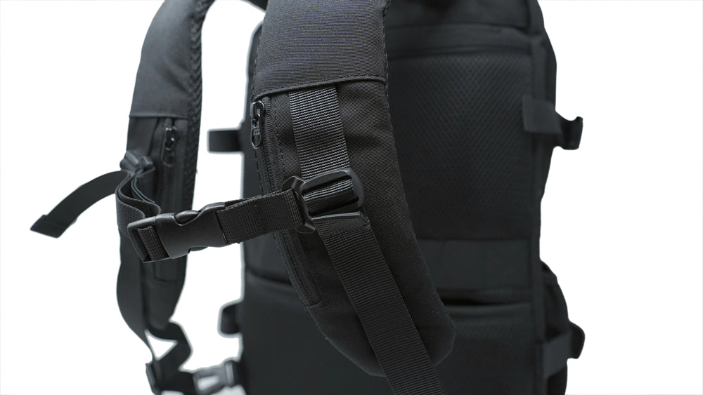 人の肩の複雑な形状にフィットする、3Dショルダーハーネス。人体を考慮した高反発クッションにてリュックと身体を適切に密着させることで、荷重が分散して過度な負担がかかりずらくなります。