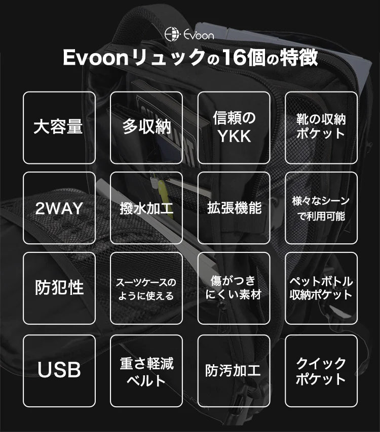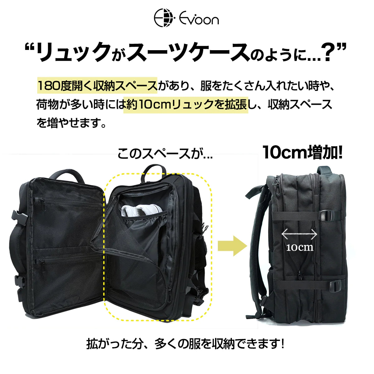 Evoon マルチビジネスリュック2.0・容量20L~拡張時35L【送料無料・3営業日以内に発送】