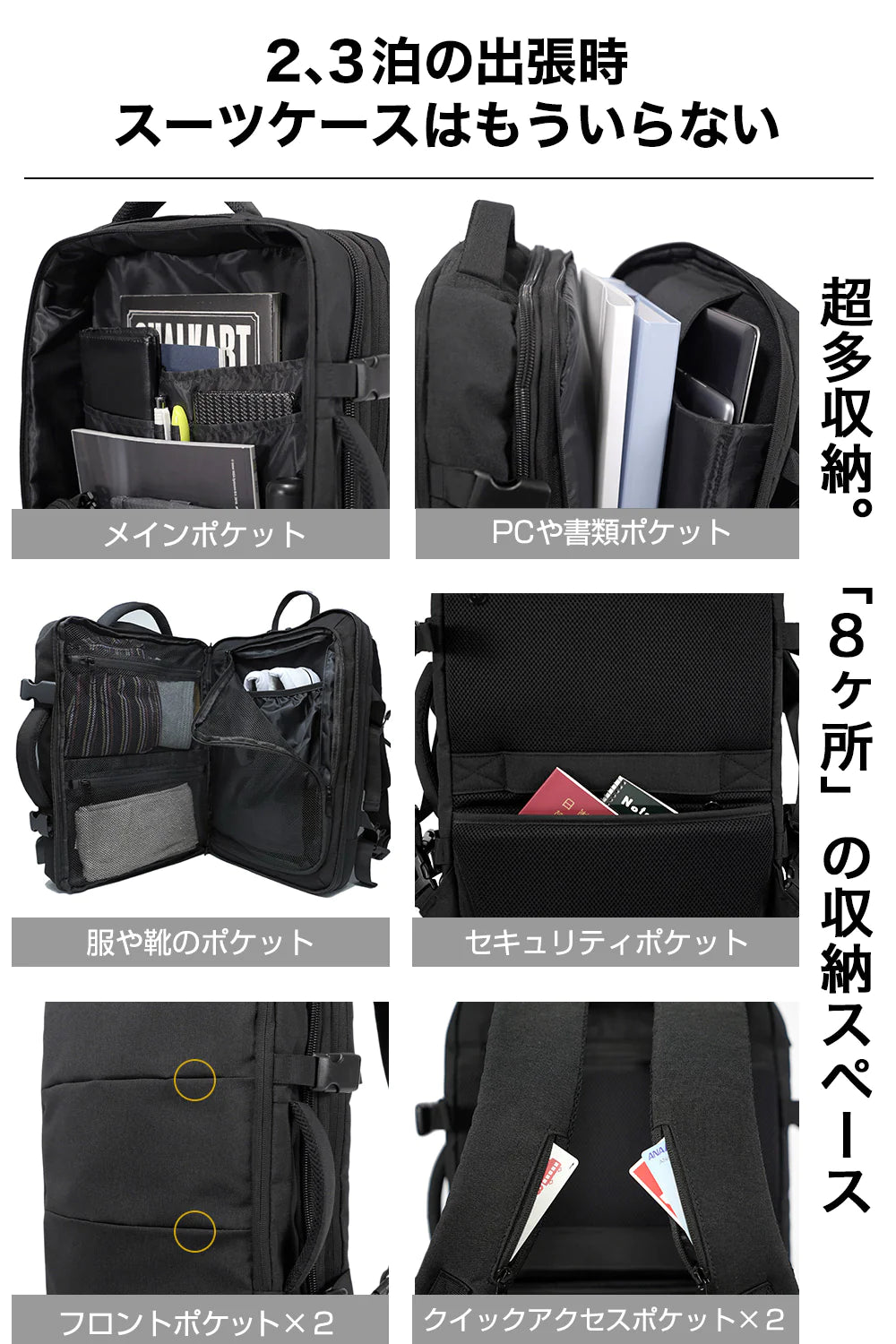 11インチから17.3インチ全てのタイプのノートパソコンの収納や書類の整頓、それだけではなく泊りの出張やアウトドアにも最適。