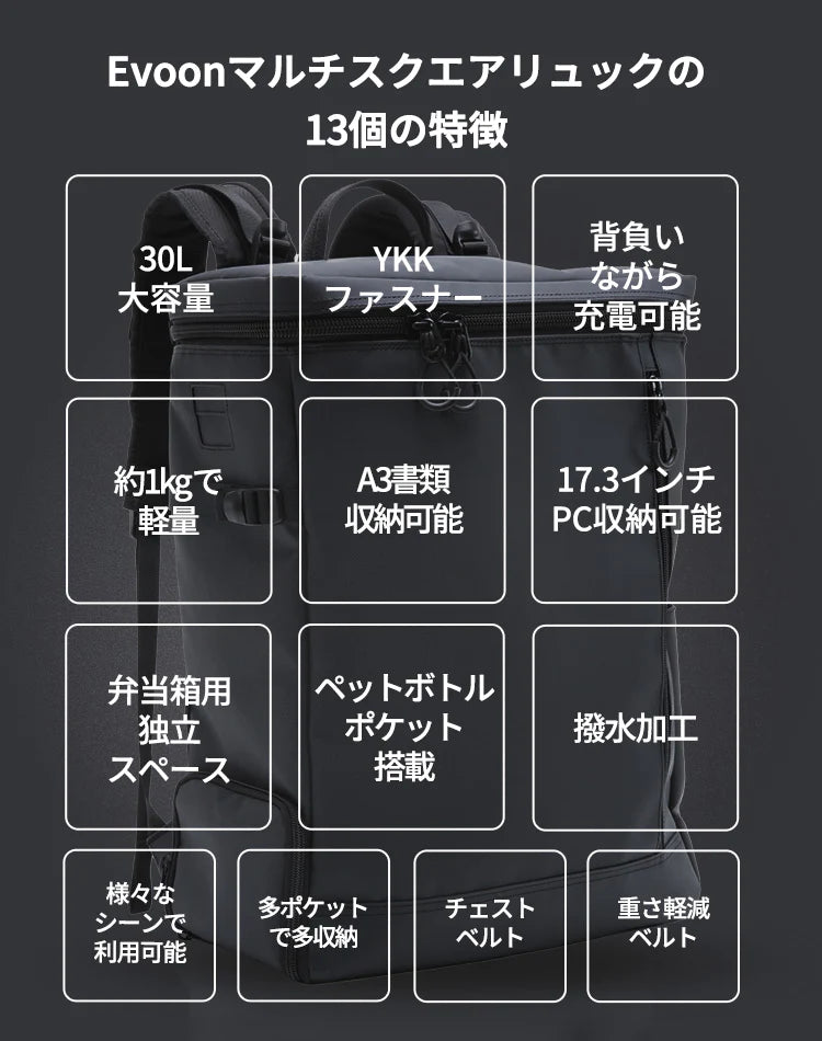 Evoon マルチスクエアリュック・容量30L【送料無料・3営業日以内に発送】