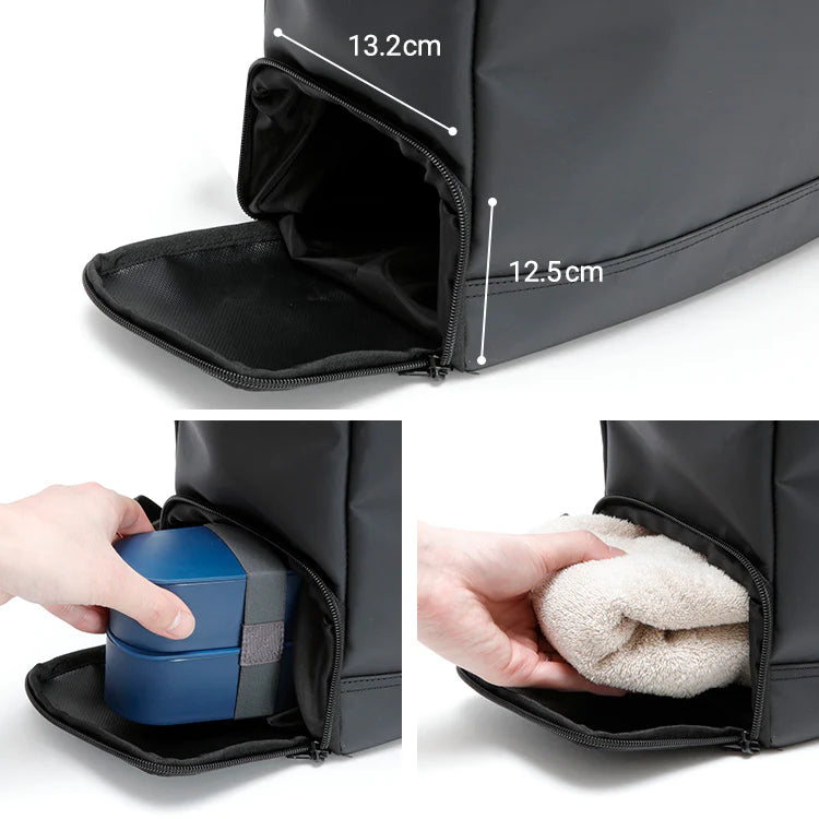 弁当箱や汚れた着替えなどの収納のための独立ポケット