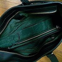 内装生地はスウェード調で、大人っぽさ、おしゃれさ、かっこよさ、高級感、中身のものの探しやすさを考えて色は深めの緑を選びました。