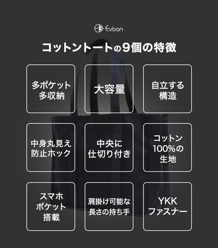 Evoon コットントートバッグ・M/Lサイズ【送料無料・3営業日以内に発送】