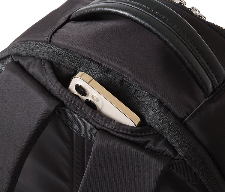 満員電車などで前抱きでリュックを持つ際にスマホの出し入れを快適にします。