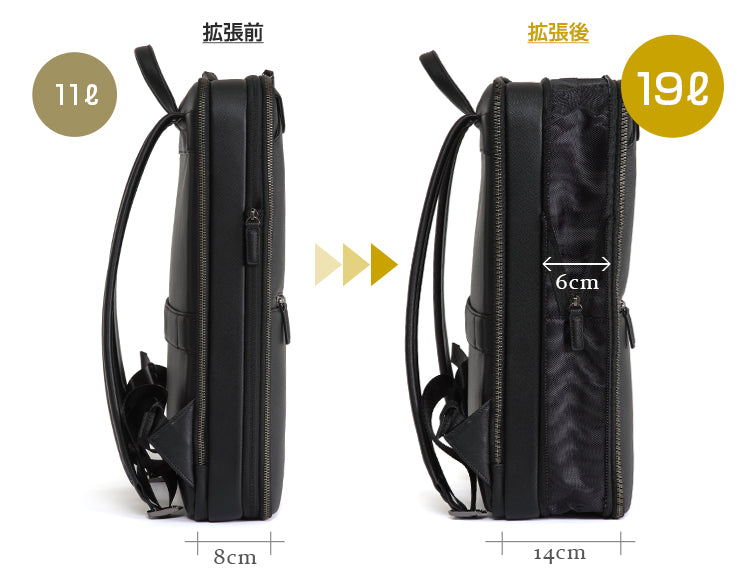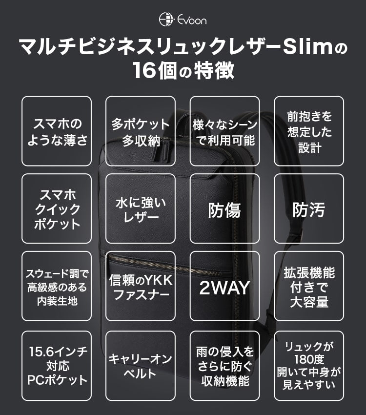 Evoon マルチビジネスリュックレザーSlim・容量11L~拡張時19L【送料無料・3営業日以内に発送】