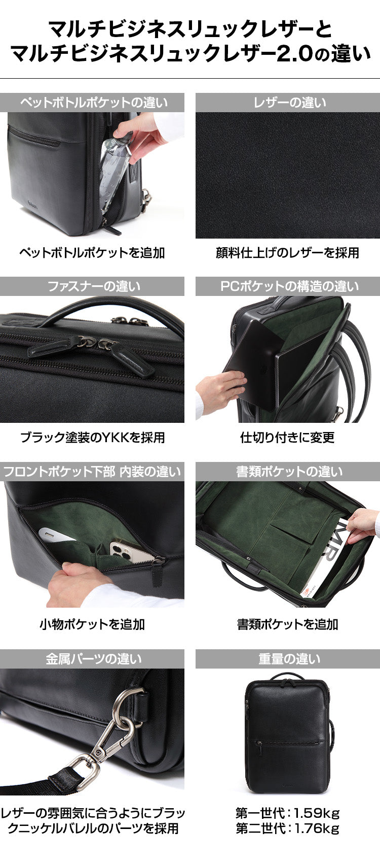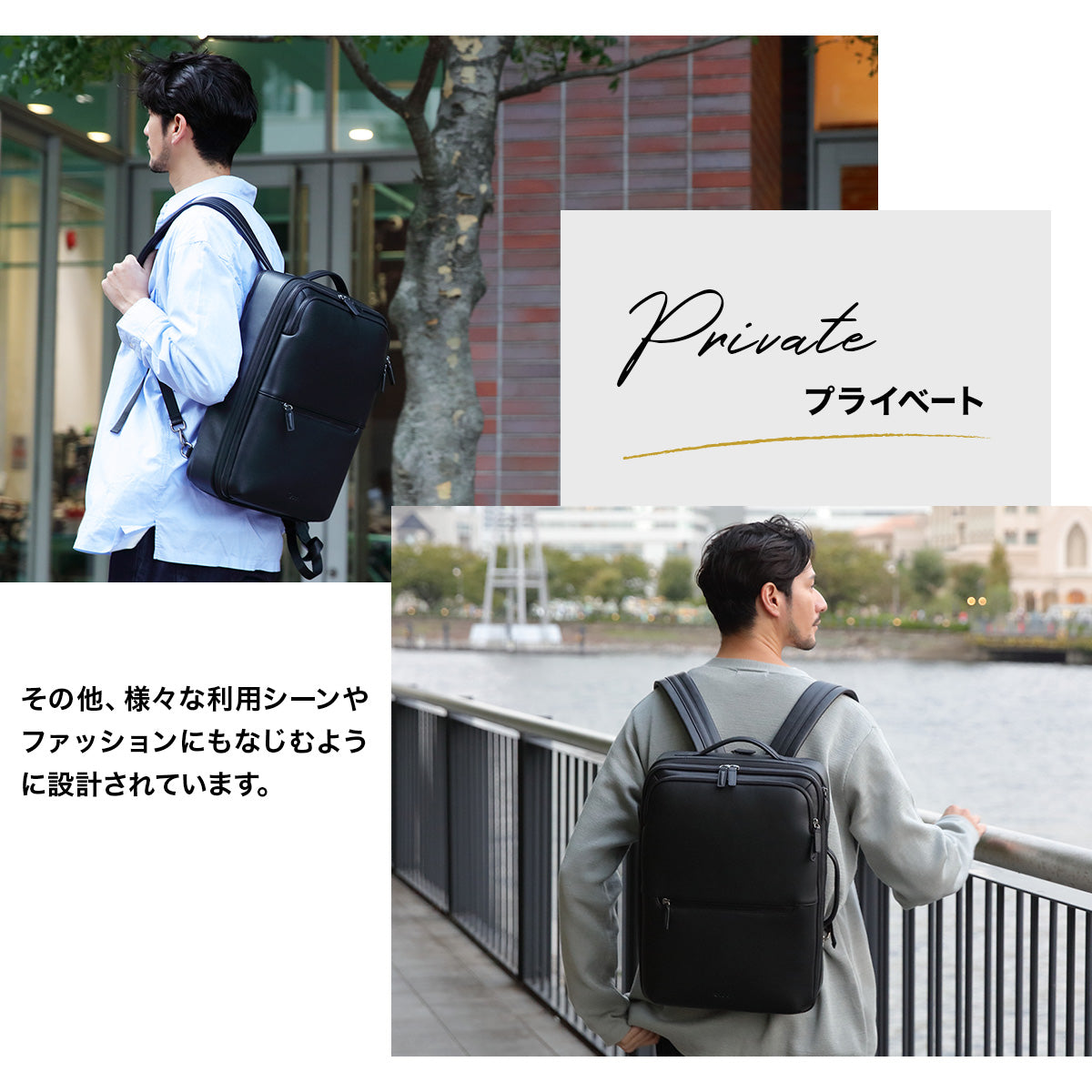 「欲しかった機能性」「ビジネスでもプライベートでもマッチするデザイン性」を融合し、”こんなレザーリュックが欲しかった”をお届けします。