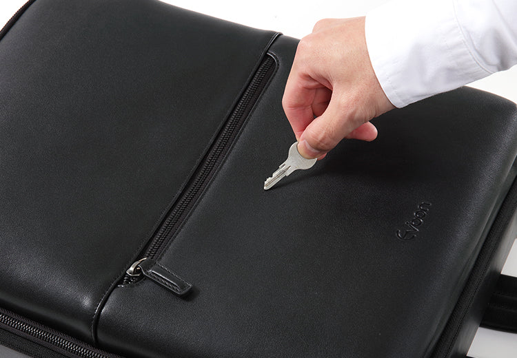 長年ご愛用頂けるように全てのファスナーに安心のYKKファスナーを使用しております。レザーやデザインの風合いと合うように金属感を出しつつ、ブラック塗装仕上げのファスナーを採用し上品さを引き立てます。
