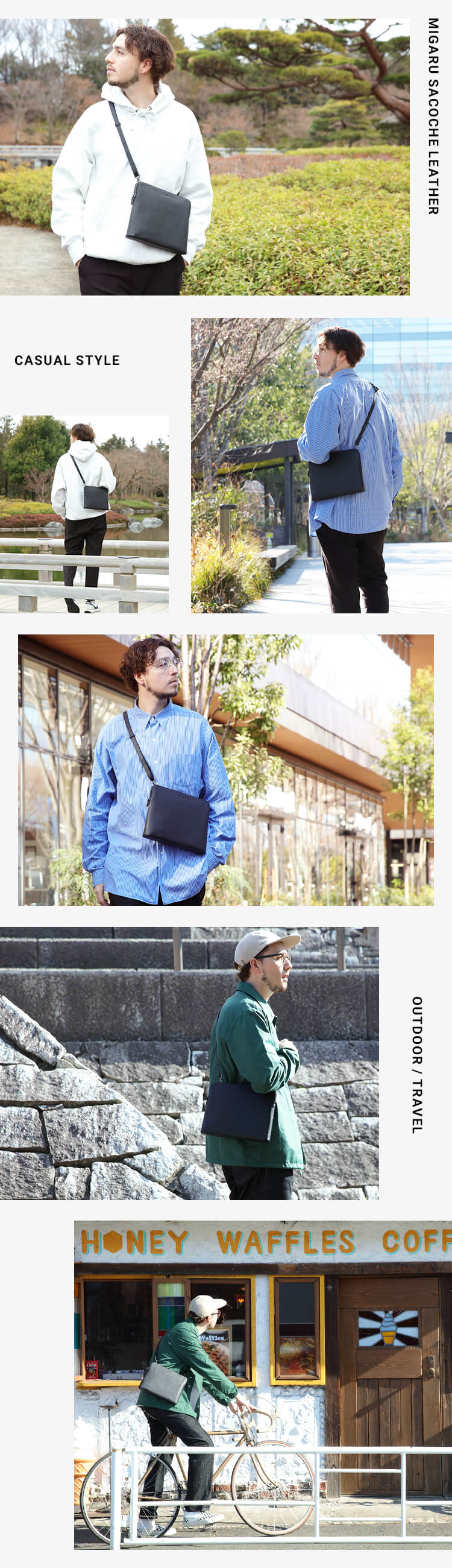 出張先・旅行先でスーツケースやリュックに忍び込ませて、フラっと外に出かける際のモードチェンジにちょうど良い収納力とスタイルを選ばないシンプルなデザイン性を追求。遠出だけではなく会食・ちょっとした買い物・ドライブ・アウトドアなど・・様々な場面でちょうどよく利用出来るマルチなミニマムバッグをこれまでの販売経験を元に、お客様の「ビジネス・生活が豊かになる」を使命にこだわりを凝縮し開発しました。