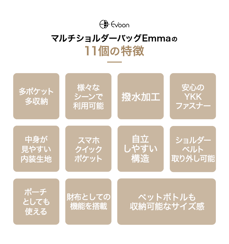 Evoon マルチショルダーバッグEmma【間も無く予約受付開始・6月下旬までに入荷予定】