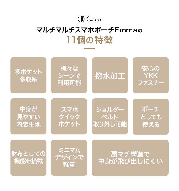 Evoon マルチスマホポーチEmma【間も無く予約受付開始・6月下旬までに入荷予定】