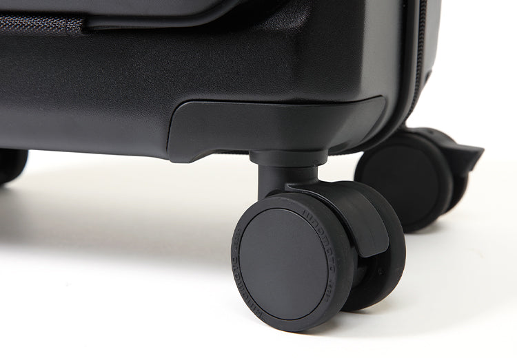 構想約2年。何度も金型とサンプル制作を繰り返し、苦労の末に完成した「マルチスーツケースFront」そんな苦労を重ねて制作したスーツケースのキャスターに多くのご要望をいただいておりましたストッパー機能を採用し、商品名も維新しEvoonスーツケースは新たに出発します。
