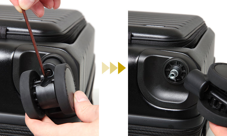 キャスターはネジを回すだけで簡単に取り外しが可能です。汚れが付着し、キャスターを洗いたい時や、キャスターが破損した際の交換に便利です。キャスターは別売りでの販売も行っております。