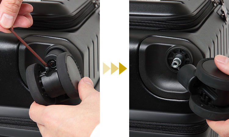 キャスターはネジを回すだけで簡単に取り外しが可能です。汚れが付着し、キャスターを洗いたい時や、キャスターが破損した際の交換に便利です。キャスターは別売りでの販売も行っております。