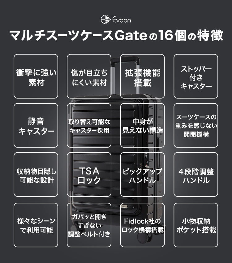 Evoon マルチスーツケースGate 容量54L~59L【まもなく予約開始・6月下旬までに入荷予定】