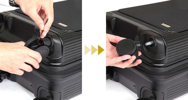 キャスターはネジを回すだけで簡単に取り外しが可能です。汚れが付着し、キャスターを洗いたい時や、キャスターが破損した際の交換に便利です。キャスターは別売りでの販売も行っております。