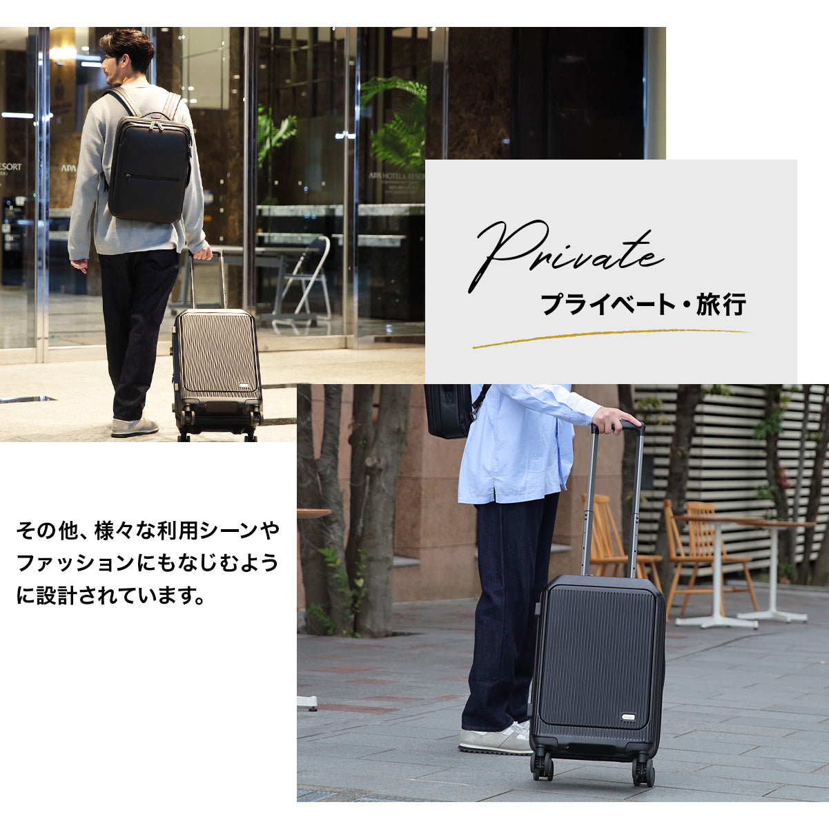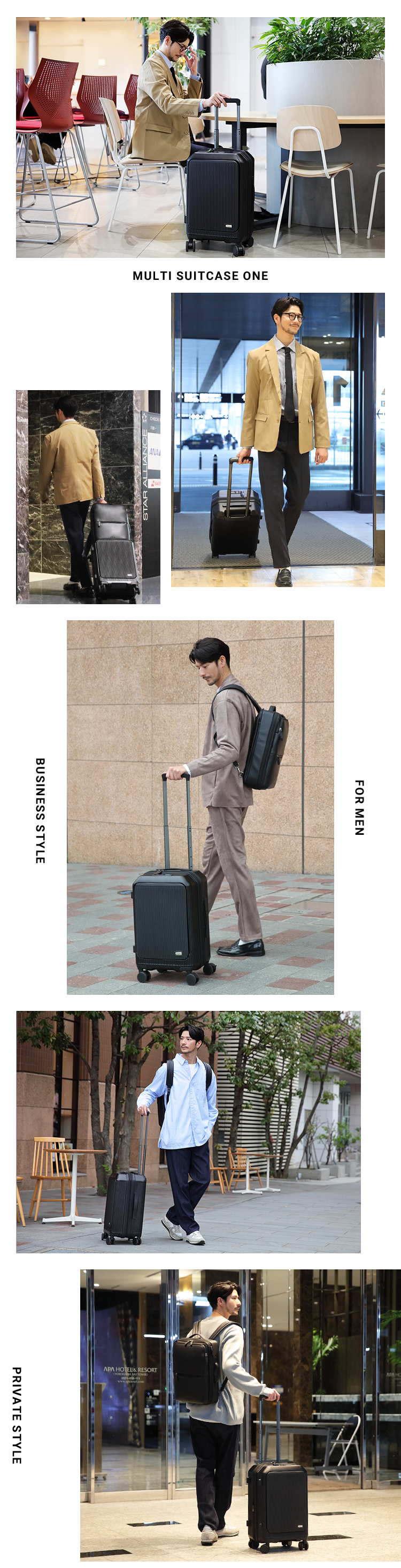 派手過ぎず地味でもないシンプルで美しいデザインに設計しました。出張などのビジネスシーンを中心に、プライベートな旅行など。さまざまな利用シーンも想定し、使いやすさ、カッコイイデザイン性、頑丈な構造にこだわり仕上げております。