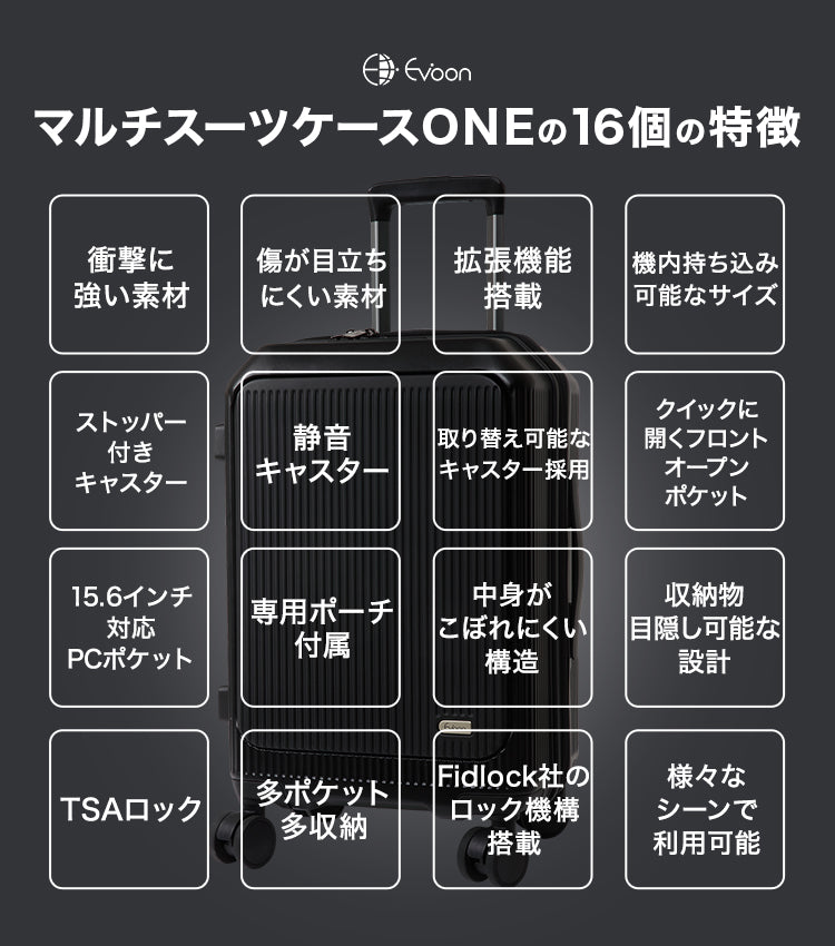 Evoon マルチスーツケースONE 容量34L~39L/機内持ち込み可能【まもなく予約開始・6月下旬までに入荷予定】