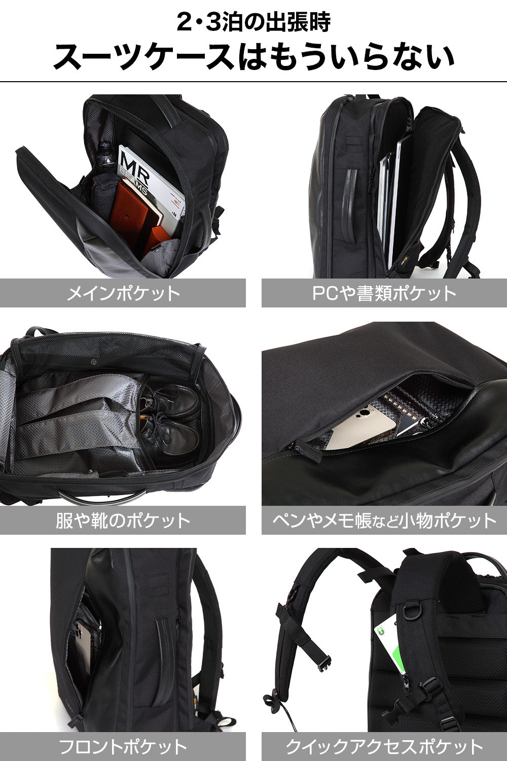 トラベルバックパックに6個の嬉しいポイントをさらに凝縮し、「理想的な機能性」「どんな場面でもどんな服装でもぴったりなデザイン性」を融合しました。”こんなリュックが欲しかった”をお楽しみください。
