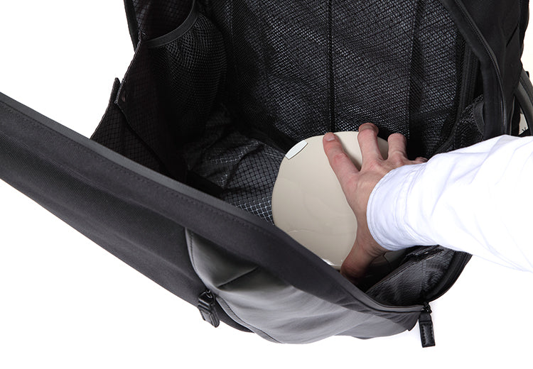 A:リュック内部からモバイルバッテリーに接続したケーブルを通気口から取り出し直接スマートフォンへ繋いでご利用頂けます。
